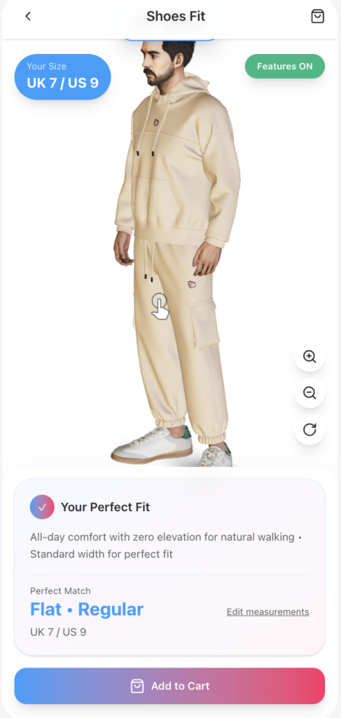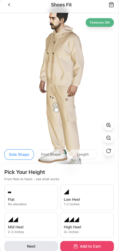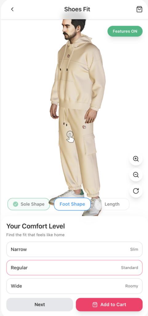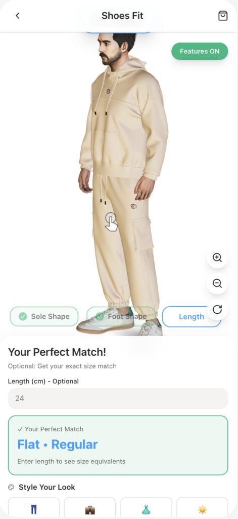 Dopplr evaluates sole shape to understand how the foot aligns with the shoe’s foundation. This helps predict pressure points, support, and overall comfort before purchase.